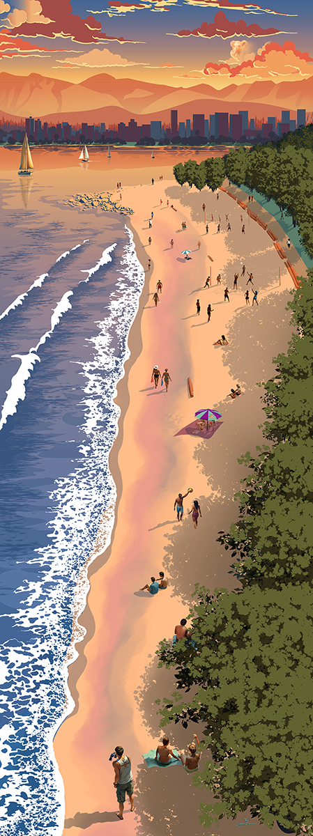 Digital wall mural created for mushroom dispensary located at Kitsilano Beach.